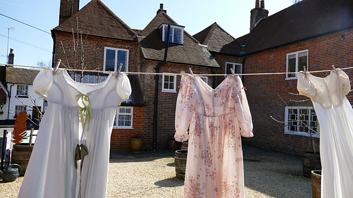 Lorsque les Thornton reviennent de leur long séjour ailleurs, deuxième partie du roman, c’est la révolution dans le manoir tranquille. La jeune Minty s’est transformée en femme. Elle est jeune, bien roulée, affranchie, et travaille comme mannequin haute couture pour la haute société. Tom l’emmène au pub, au restaurant, au cinéma, se met en quatre pour elle. Il rompt avec Ignazia, trop commune. Sa choucroute de cheveux, haute de quinze centimètres comme c’était la mode à la fin des années cinquante, gêne les spectateurs, mais elle s’en moque ; Minty ne fait que ce qu’elle désire. Elle se laisse d’ailleurs draguer tout autant par Dermot, qui l’emmène faire des tours dans sa nouvelle voiture ; elle aime la vitesse. Quant au père de Minty, Charles, veuf lui aussi, il incline pour Kate, dont il était l’ami de collège de son mari décédé Alan. Ils pique-niquaient ados en « se servant de leurs nombrils comme salière », lui dit-il sensuellement. Il est de sa génération, mieux assorti ; et ce qui doit arriver arrivera.