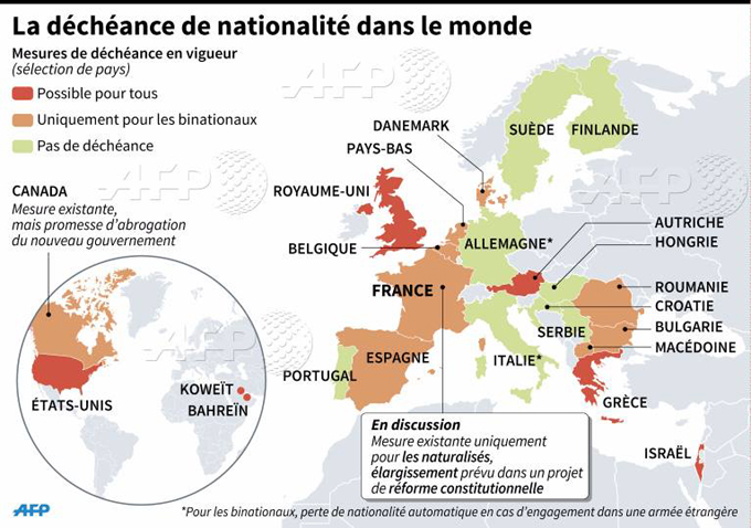 Decheance de nationalite carte du monde AFP