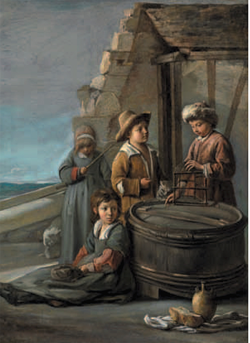 freres le nain enfants avec une cage a oiseau et un chat bpk berlin