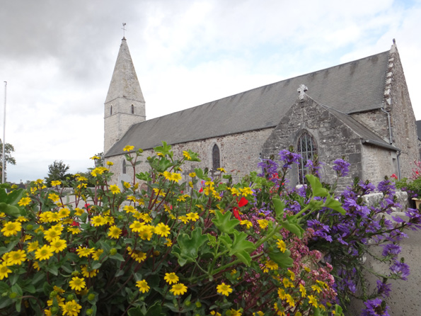 Lorsque nous ressortons de l’obscurantisme fervent, le soleil est revenu et nous pouvons faire le tour du château mi-XIVe en ruines, résidence royale de Charles le Mauvais. Il a été construit non pas en hauteur mais sur la rive gauche de la Sienne pour protéger le port d’échouage et le bourg de Regnéville. L’importance de son trafic était dû à la foire de Montmartin. Nous visitons les salles restaurées sur la mer qui servent aux expositions concernant le « lait et cidre » (instruments paysans) et la peinture d’un « archiculteur » (architecte qui se pique de peindre abstrait en acrylique et dont le nom ne mérite pas d’être retenu). Le château, pris plusieurs fois par les Anglais, défendait l’accès à Coutances lorsque les bateaux pouvaient y accéder avant l’ensablement. La garnison ne se composait que d’une douzaine de soldats seulement. Le bâtiment a été détruit en 1637 sur ordre de Louis XIII au moment du siège de La Rochelle lors de la révolte des Protestants ; le seigneur de Regnéville conspirait en effet avec les parpaillots, ce qui constituait un crime de haute trahison. Il ne reste du donjon qu’un chicot révélant un escalier à vis à l’intérieur.