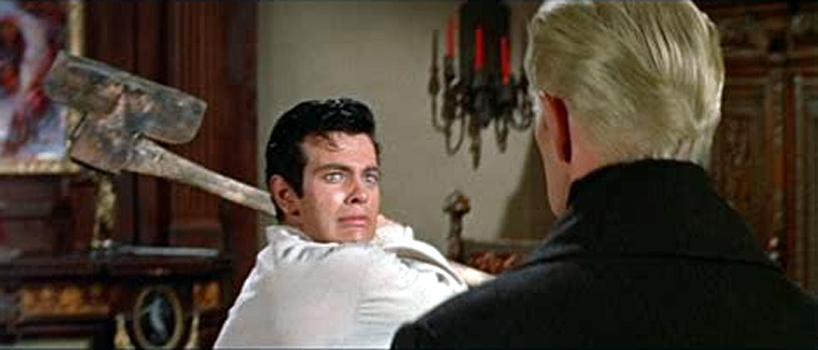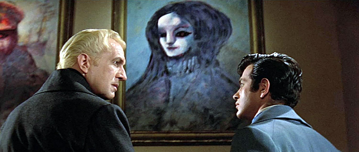 Roderick (Vincent Price) et Madeline Usher (Myrna Fahey, 26 ans au tournage) sont jumeaux. Philip Winthrop (Mark Damon, 26 ans lui aussi), qui a vu Madeline à Boston pleine de vie et de joie, s’est fiancé avec elle. Mais, dans la maison de famille où des générations d’Usher se sont succédées, toutes criminelles, déviantes et maléfiques, Roderick le sensible, peintre halluciné, « croit » que sa sœur et lui sont atteints d’une tare congénitale, voire deviennent lentement abhumains. D’où sa misanthropie, sa dépression, son hypersensibilité des sens, son hypocondrie qui voit la maladie le ronger, sans savoir laquelle. Tout le contraire de ce que les Puritains fondateurs de Boston prônaient, une alliance communautaire et avec Dieu. Notez que Philip porte le même nom que l’avocat fondateur de Boston, convaincu que la vie en communauté était la seule façon d’être humain. En s’isolant, Roderick et sa sœur se mettent à l’écart de leurs frères et sœurs chrétiens et de Dieu ; ils sont condamnés au Mal et à la stérilité. Par mimétisme de jumeau (sans grimper aux rideaux de l’inceste, comme certains en ont émis l’hypothèse), Madeline réagit comme Roderick : elle se ronge, dépérit ; son frère-pareil déteint sur elle. Est-ce la maison qui reflète l’âme de Roderick ou l’âme de Roderick qui laisse la maison se ruiner ? Éternelle question du « to be, or not to be » du prince Hamlet dans Shakespeare, dilemme de choisir la douleur de vivre ou de mourir.