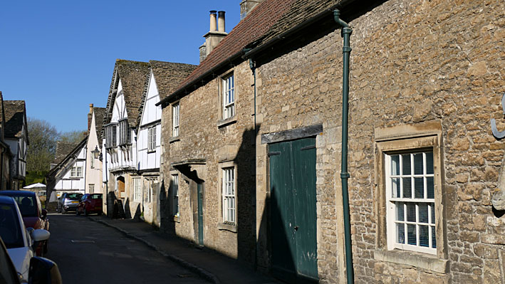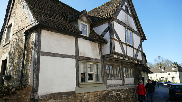 Lacock est un charmant village, conservé dans son jus et administré par le National Trust. L’héritière a donné l’ensemble, terre et village, pour éviter les droits de succession. Des œufs de Pâques ornent en couronnes les maisons. Des œufs à Lacock, c’était couru. Les rues offrent leurs cottages bien anglais, en pierres grises. Dommage que les voitures garées tout le long du trottoir gâchent la perspective. Mais les occupants sont des gens riches et influents qui ne supporteraient pas de laisser leur véhicule dans un parking à l’entrée du site.