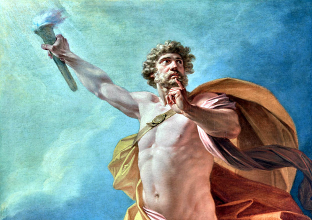 Parmi les colères fondatrices, le mythe du partage de Mékôné. Prométhée a provoqué la colère de son cousin Zeus, nouveau souverain des dieux qui a détrôné son père Kronos. Il a décidé d’en finir avec la proximité des mortels qui était la règle jusque-là. Il leur réserve la seule fonction de l’honorer, lui et sa famille d’Olympiens. Prométhée est un Titan (ce qui a donné Satan en langue juive), un dieu ancien de l’Âge d’or. Il a été chargé par le nouveau souverain des cieux Zeus de répartir les morceaux d’un bœuf énorme lors du dernier festin rassemblant mortels et immortels. Prométhée accorde aux mortels la belle part de l’animal immolé, c’est à dire la viande comestible. Il réserve aux immortels les os dénudés de chair, camouflés sous la graisse appétissante (à l’époque).