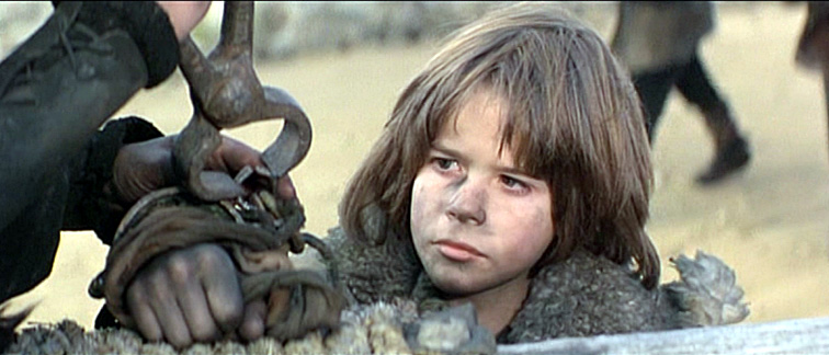 Ils retournent au chariot avec Mose, soigné mais faible sur son cheval, mais ne peuvent quitter le camp à la nuit. Ils sont donc menacés par les sbires de Baxter, qui avancent masqués comme des malfrats du Ku Klux Klan, s’abritant derrière cet anonymat pour perpétuer leurs forfaits. Boss, qui connaît bien ce genre de gang, les surprend à la nuit avec Charley, les désarme et en tabasse un ou deux de ceux qui ont blessé Mose. Pendant ce temps, d’autres sbires ont attaqué le chariot, tué Mose d’une balle dans la tête et blessé sérieusement l’adolescent Button d‘une balle dans la poitrine avant de le frapper violemment sur le crâne. Ils ont tué même le chien, Tig, au nom de grand-mère Costner. C’est le tueur au bras cassé qui s’en est chargé, il « a eu du plaisir », dira-t-il.