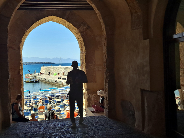 Au bord de mer, la forteresse est reconvertie en habitations et restaurants. La Porta Pescara était la porte des pêcheurs, elle est aujourd’hui celle des touristes qui vont voir la plage. Certains se baignent, silhouettes brunes et nues, au loin sur la jetée. Eloi, après déjeuner, ira les imiter
