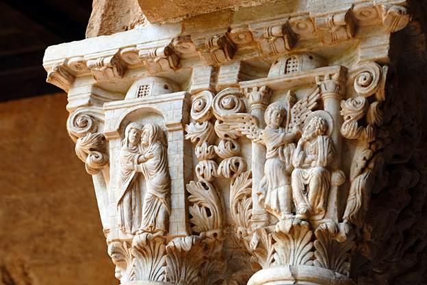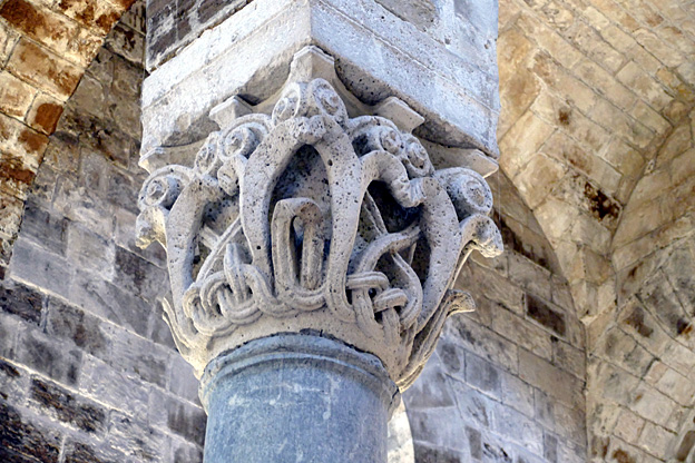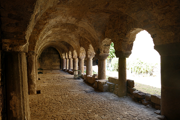 L’abbé Ambroise fit construire le cloître en 1131 environ avec des colonnes tirées des ruines de maisons romaines. Les chapiteaux sont ornés de sculptures d’animaux. Un tremblement de terre l’a recouvert et il n’a été remis au jour que voici quelques décennies