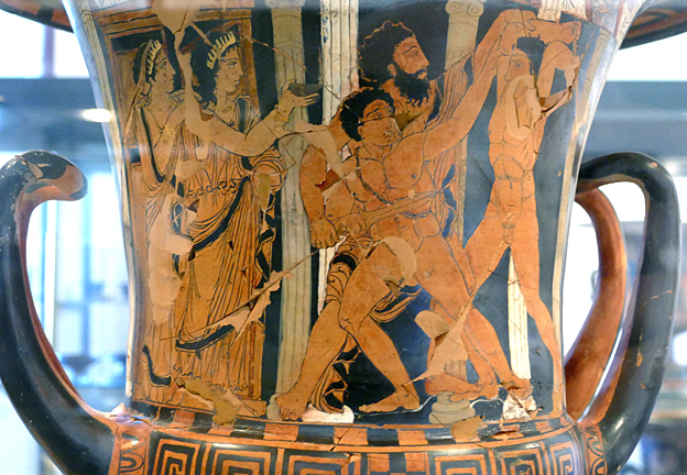 L’ordre de la civilisation hellène va d’ailleurs faire disparaître cette aberration de l’histoire. Thésée, poursuivi par elles après en avoir enlevé une, va les battre à plate couture avec son armée de jeunes mâles disciplinés, liés entre eux et entraînés. Héraklès, déjà, les avaient affrontées, comme Bellérophon. Ces filles, qui vivent au nord de la mer Noire, sont en retard de civilisation : elles adorent Arès, un dieu archaïque et sans raison, « l’abruti de la famille olympienne » selon l’auteur, alors que les Hellènes adorent plutôt Athéna. Deux façons de faire la guerre : l’une sauvage et permanente avec Arès l’insatiable, l’autre réfléchie et protectrice avec Athéna. Quant à Artémis, la chasseresse, les Amazones honorent sa version exigeant le sacrifice de captifs étrangers, selon Euripide. En bref, des barbares carnassières. Une analogie avec Poutine se présente à l’esprit : point d’Athéna chez ce mafieux et sa clique de criminels de guerre, mais la fureur de faire mal et d’enlever de la descendance, sans souci d’harmonie à long terme.