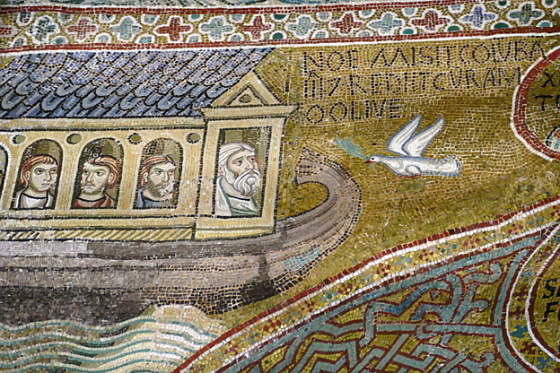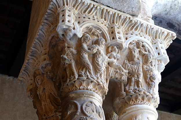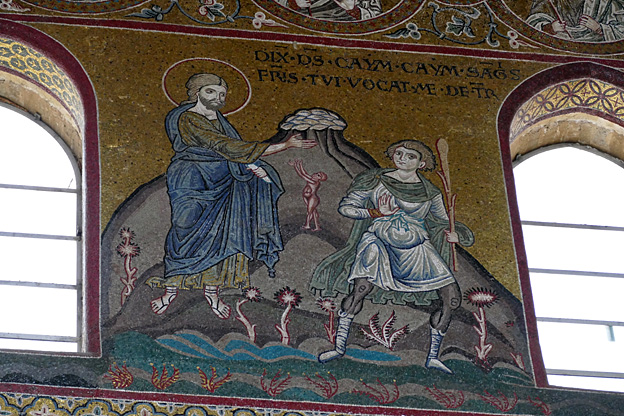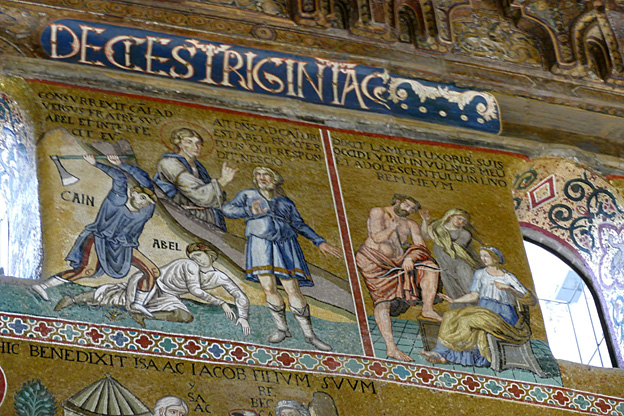 Dans la nef centrale la Genèse, dans les nefs latérales la vie du Christ. Une vraie bande dessinée pour illettrés de l’an mil (et incultes d’aujourd’hui).