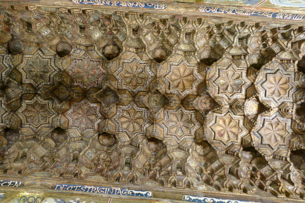 Nous commençons par le palais normand Unesco sur base phénicienne du septième siècle, un ksar arabe du Xe transformé par les Normands en palais royal au XIIe. Son prestige a été retrouvé au XVIe siècle sous les vice-rois espagnols et sous les Bourbons. Aujourd’hui c’est le siège de l’assemblée régionale de Sicile.