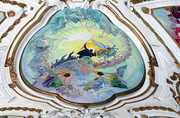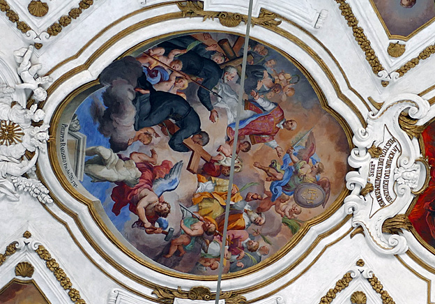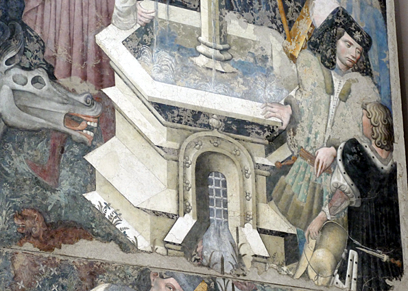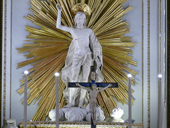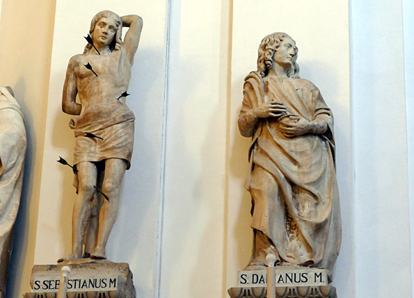 Les vies de Saint-François et de Saint-Laurent, en plus sérieux, se font face. Les anges adolescents sont moins joueurs et plus pudiques, bien que quasi nus sauf un linge qui s’accroche aux parties ; on le regrette presque.
