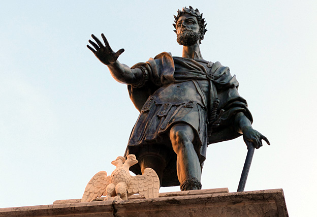 Le bus va vers Palerme, la Panormos fondée par les Phéniciens. A Bagheria s’élève la villa Palagonia aux quelques 60 monstres grotesques de Tomaso Napoli sur les 600 originaux, dit-on, en réaction au sérieux de l’Inquisition. Plutôt surréaliste, comme le propriétaire, Ferdinand Gravina, prince de Palagonia. La villa de 1715 est elle-même théâtrale, sa façade en courbes comme un rideau de scène, ses pavements de marbres colorés, ses fresques grises au mur, ses miroirs au plafond pour refléter les chandelles des bals et réceptions. On dit que le prince était fou de jalousie et qu’il avait enfermé en ce palais entouré de monstres sa jeune femme trop séduisante. Certains grotesques avaient les traits des amants, permettant à l’épouse de méditer sur ses fautes et l’horreur de ses désirs charnels pour d’autres mâles, plus juvéniles que son mari. Goethe a évoqué cette villa dans son Voyage en Italie.