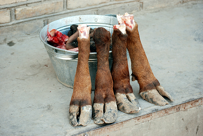 Nous faisons un petit tour dans le bazar couvert où s’entassent les boutiques. Elles débordent dehors, sous étals. Ce qui surprend, ce sont les bacs entiers de bonbons en vrac, enveloppés, de sucre candi brut, de gâteaux glacés au blanc d’œuf et décorés de roses en sucre. Cette profusion sucrée est pour nous un tant soit peu écœurante mais nous sommes dans un pays longtemps resté soviétique qui a connu la pénurie chronique de sucreries et qui se rattrape. La génération prochaine évoluera comme nous, probablement.