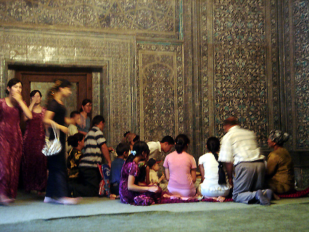 La matinée est la suite de la visite guidée de la ville commencée hier. Un procédé urbanistique original fut de placer deux monuments l’un en face de l’autre, systématiquement. On appelle cela « koch » et c’est de tradition dans toute l’Asie centrale.
