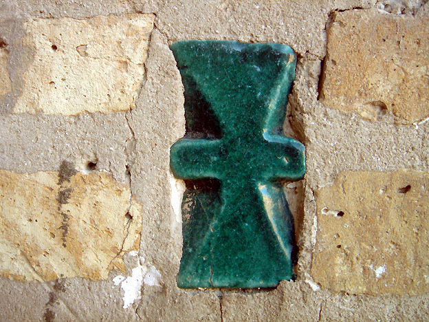 Sur les murs de brique, sont parfois incrustés des céramiques en forme de 8, symbole mathématique de l’infini.
