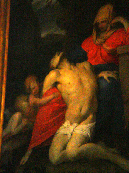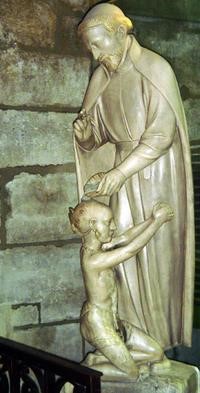 Les chapelles qui défilent de part et d’autre de la nef – il y en a 14 – sont un catalogue des bondieuseries dont raffolait la bourgeoisie bien-pensante des débuts de la République troisième. Dans les chapelles de droite, c’est le coin des hommes : un saint Pierre de bois, un saint François-Xavier se penchant pour baptiser un très jeune Annamite presque nu, un Monseigneur se pâmant devant la mort proche avec une belle maxime oratoire pour Chambre des députés, une peinture « gothique » à la Walter Scott pour saint Denis.