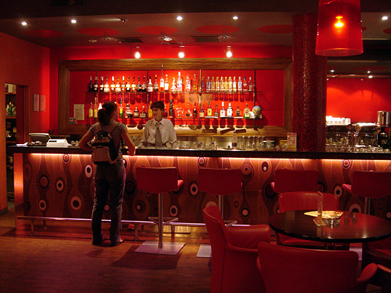 Le rendez-vous pour le dîner est à 20h. Le « O’Parnass » est une paillotte chic installée au coin du parc, face au jeu des enfants, de la statue d’un musicien sur le trottoir de l’avenue, et d’un bronze de jeune pêcheur ayant ferré un gros poisson. Le menu est « de luxe », le public citadin et l’orchestre « cosaque ». Lorsque s’élève la voix de ventre de la chanteuse, toute conversation ne peut que s’éteindre, submergée. La salade « de printemps » présente divers légumes frais, râpés ou émincés, dans la même assiette. C’est une sonate en radis, concombre, poivron, carotte. La tranche d’esturgeon qui suit est grillée sauce crème accompagnée de quelques aubergines, poivrons jaunes et tomates, grillés aussi. Le poisson est trop cuit mais savoureux. Il pleut violemment lorsque nous sortons du restaurant.
