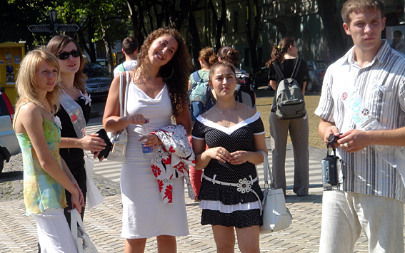 Les femmes se préoccupent plus de leur toilette et de leur teint, elles ont quitté les comportements hommasses en vigueur au temps soviétique. Les hommes, au contraire, ont le conservatisme des mœurs. Nous le constaterons très vite, les Ukrainiennes sont particulièrement férues de mode et de vêtements. Sevrées par l’idéologie communiste qui voulait les femmes masculines et travailleuses, elles ne furent sitôt libérées de ces mœurs médiévales et munies d’un viatique dû à leur salaire libéral, qu’elles se sont précipitées pour acheter robes, chaussures, maquillage et parfums. Exister, c’est être belle – ici surtout. Pas de tee-shirt informe, de jean boudinant ni de baskets prolo : des hauts talons pour cambrer le mollet, des robes ajustées pour mettre en valeur la silhouette et une coiffure apprêtée qui n’a rien à voir avec ces choucroutes oxygénées des « coiffeuses » qui se prennent chez nous pour des stars. A Kiev particulièrement, et surtout le dimanche, être bien habillé tient du rituel.