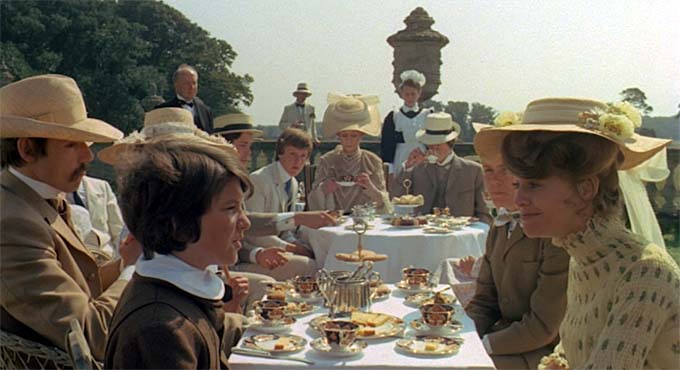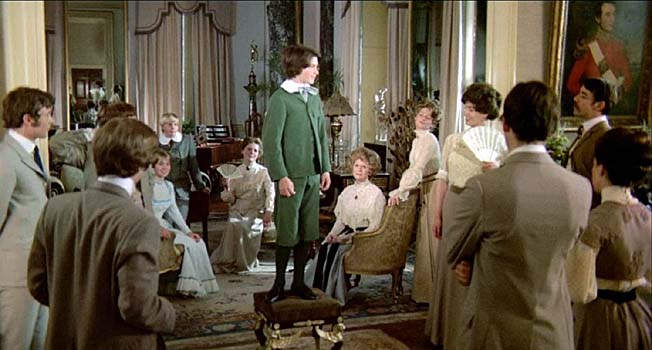 Il ressent de l’émotion pour la belle Marian, qui en est flattée et l’emmène en ville s’habiller pour l’été, car il ne porte qu’un costume toutes saisons du Norfolk, trop chaud pour les températures estivales de cette année (35° centigrades au thermomètre extérieur). Les garçons sont toujours collet monté, col fermé et cravate, portant veste sur leur chemise et parfois un sous-vêtement en dessous. La sensualité n’est admise que pour le sport, où les mâles se font admirer des spectatrices. Ils arborent alors une simple chemise à col ouvert, et même un décolleté sur leur poitrine nue jusqu’au sternum lors des exercices de cricket. S’ils se baignent dans le lac du domaine, c’est en maillot deux pièces. Cela dit, les garçons dorment ensemble et se déshabillent sous les yeux l’un de l’autre pour se mettre en pyjama. Les femmes et filles sont en robes et jupons, portant gants, chapeaux et ombrelles. La chair est masquée autant que faire se peut.