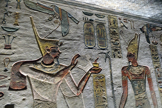 Les tombes commencent toujours par un long couloir qui descend, imitant le parcours du dieu-soleil vers la nuit souterraine. Il conduit à une ou plusieurs salles avant d’arriver dans la chambre funéraire où se trouve le sarcophage. En général, les tombes ont été ouvertes et les momies déplacées, les bijoux pillés. Ne restent que les décors sur les murs et les plafonds. Toutes ne sont pas ouvertes au tourisme, mais alternent selon les saisons pour éviter une trop grande dégradation due au gaz carbonique de la respiration. Il est bon de se renseigner sur les tombes ouvertes avant de faire son choix.