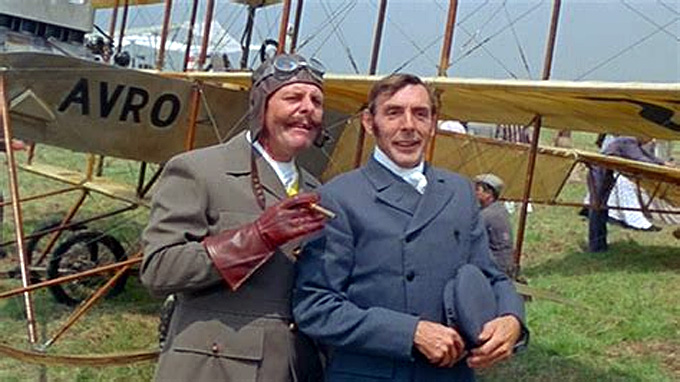 Qu’à cela ne tienne : en 1910 l’Angleterre, maîtresse des mers, se doit d’être aussi maîtresse des airs ! L’orgueil britannique, sous l’uniforme rouge d’un jeune officier blond très coincé, Richard Meys (James Fox), stimulé par son espoir de fiancer Patricia (Sarah Miles), entreprend le riche patron de presse et père de la promise lord Rawnsley (Robert Morley) pour qu’il organise une fête de l’aviation afin de réunir tous les prototypes actuels d’avions. Le vieux lord à cigare va donner sa fille au fringuant jeune militaire de la haute société car il a été avec son père à Oxford – cela crée des liens d’entre-soi incestueux tout à fait recommandables. Patricia voudrait bien être la première femme à voler dans les airs mais, à cette époque, il n’en est pas question. Déjà, elle fait de la moto à l’insu du paternel.
