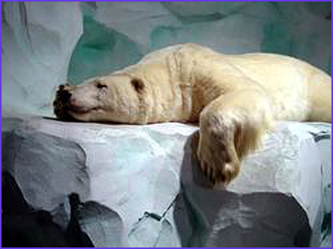 Le pavillon polaire réussit l’exploit de réfrigérer une vraie banquise, pour la plus grande joie des manchots empereurs qui, popularisés par le film – sont à la fête. « Manchots » au sud, « pingouins » au nord est le mot d’ordre des panneaux. Ils se dandinent au-dehors mais plongent et nagent par torsion du corps comme aucune danseuse humaine n’est capable de le faire. Ils vont comme une fusée le long des vitres d’observation, si vite qu’aucune photo numérique n’est capable de les capter sans flou, c’est dire ! La manchotière comprend près de 40 habitants qui paradent, font leur cent mètre nage libre ou s’expriment avec vigueur. Tout un banc de glace permet aux plus vieux de jouir d’une vue imprenable sur les exploits des jeunes. Sans parler de l’ours blanc qui surveille et des grands oiseaux polaires qui planent…
