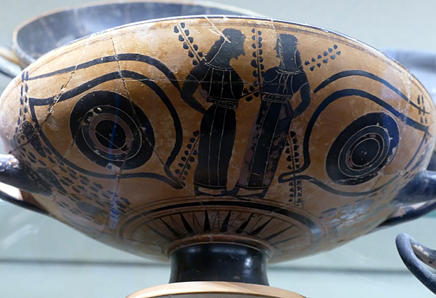 Les trois métopes du temple C taillés dans du tuf blanc vers 520 avant, montrent le quadrige du Soleil, Persée tuant Méduse, Héraclès châtiant les brigands Cercopes. Les Cercopes sont des enfants nains de Théia, fille d’Ouranos, qui ressemblent à des singes. S’étant moqué d’Héraclès, il les attacha la tête en bas et les transporta sur son épaule, ce qui leur permit de voir la pilosité noire de son cul. Leur mère les avait avertis qu’un certain Melampygos (fesses-noires) leur chercherait noise. Il faut dire qu’ils avaient tenté de voler les armes du héros pendant son sommeil.