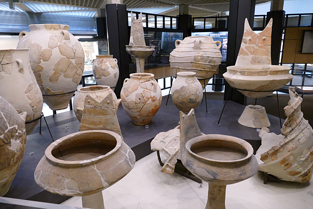 De nombreuses salles sont consacrées à l’histoire de la ville et de la région, de l’époque néolithique jusqu’aux Grecs. Il y a pléthore de vitrines de tessons, quelques panneaux explicatifs pour agrémenter. Le site de Castelluccio, la culture de Thapsos avec ses grandes jarres funéraires, la culture de Pantalica fin de l’âge du bronze, la tombe du bronze de Madonna del Piano, les spirales de pectoraux de San Cataldo, puis la colonisation des cités grecques dès le VIIIe siècle avant. Syracuse est la ville grecque la plus importante de l’île, plus qu’Athènes elle-même à son apogée.