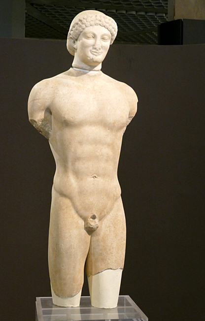 La céramique polychrome de Megara Hyblaea, importée puis produite localement, montre des chevaux, des frises de bouquetins, des oiseaux. Quelques statues de kouros du VIe siècle ionien, de très jeunes hommes pubertaires, et d’athlètes adultes, une déesse allaitant du VIe, peut-être une Mère sicule à laquelle on vouait un culte. Une stèle funéraire d’un jeune garçon nu près d’une figure féminine drapée, de la première moitié du IVe est émouvante.