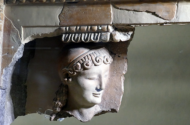 Le sourire de la Gorgone est reconstitué ; ses terres cuites protégeaient les temples sur les frontons.