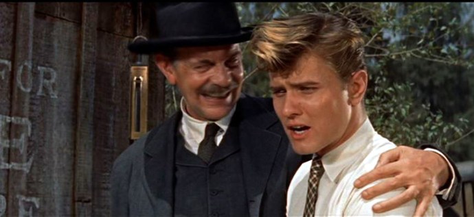 Cal est éperdu de solitude. Personne ne le reconnait pour ce qu’il est, lui-même doute puisque tous répètent le père et le frère qui disent qu’il est « mauvais », seul le shérif (Burl Ives) se montre plus humain. Mais un enfant mal aimé ne peut qu’en vouloir à la société entière, non ? James Dean lui-même a été élevé dans une ferme sans mère et sans amour de son père. Ce pourquoi il semble le seul naturel et vivant dans le film ; les autres acteurs sont si conventionnels… Mais parce que le scénario le veut. On imagine mal aujourd’hui le conformisme et la bigoterie de cette population américaine d’il y a un siècle – ou même un demi-siècle ! Seule la fiancée Abra (Julie Harris, 20 ans) comprend l’adolescent. Elle doute elle-même d’aimer vraiment Aaron, sentant que ce lien est socialement bien vu mais de circonstance, alors que la profondeur de son promis lui échappe. Il apparaît trop comme un clone de son père, aussi assuré d’être dans le bon, le droit, le vrai parce qu’il obéit au père comme au Père et applique les ordres tels qu’ils sont donnés et le Livre tel qu’il est écrit.