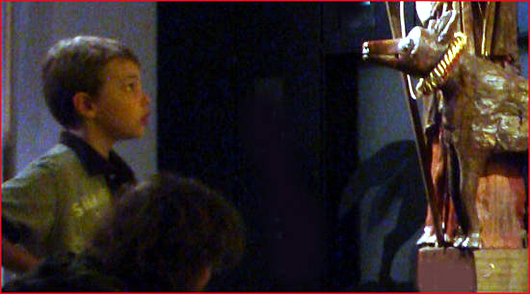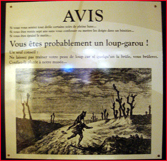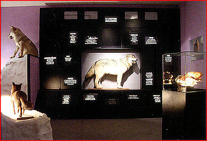 Les salles se succèdent, éclairées de façon théâtrale du plus sombre au plus clair à mesure que vous avancez. L’irrationnel d’abord, le rationnel à la fin, la progression est savamment menée. Vous passez du physique de la bête aux mœurs évoluées du loup, de ses prédations aux légendes des hommes – déformées et amplifiées. On le dit issu du Diable, évidemment, alors que Dieu, sensé être à l’origine de toute la Création, n’aurait fait que le chien… S’il est diabolique, alors il tente l’homme, surtout le mâle, l’incitant à se transformer en garou (sexuel et violent, au contraire des Commandements d’église). Le garou serait la prononciation gauloise de vere ou vir, l’homme, dans l’expression germanique ‘verewolf’, homme-loup.