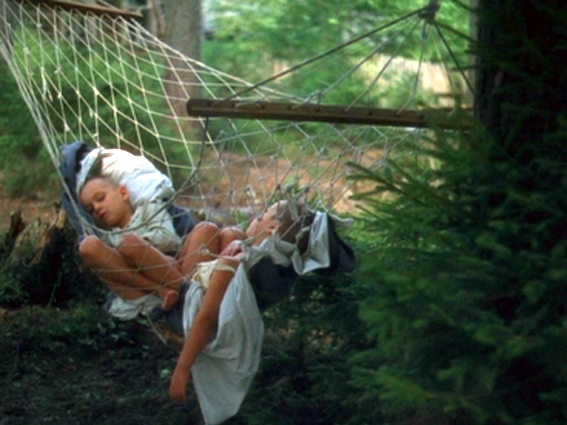 Aliocha se souvient de la datcha d’enfance (sise au tournage à Tuchkovo, à près de 90 km à l’ouest de Moscou). Il revoit sa mère jeune (Margarita Terechkova de nouveau), le père trop rarement présent (Oleg Yankovsy de nouveau), un poète qui chante la glèbe dans les années trente. La version sous-titrée permet à chacun d’apprécier le chant de la langue russe, magnifique malgré l’abâtardissement du parler bolchevik. La lumière est belle en fin de soirée alors que le soleil rosit les nuages au-dessus de la forêt et des champs. Les enfants dorment en hamac, Aliocha et sa sœur, sa mère rêve en contemplant le chemin d’où le père peut venir, la route de la gare qui conduit au village. Un buisson marque l’endroit où l’on peut reconnaître celui qui vient. Le plan filmé rend la sensation du temps qui passe.