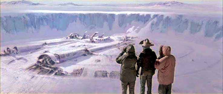 Q localise le terroriste sur une île contestée entre Japon et Russie, ancienne base de la Seconde guerre mondiale où Safin a établi sa ferme de nanorobots destinés à envahir le monde pour prendre le contrôle des gens. Le virus programmé peut cibler une seule personne, ou toute une famille, éradiquer un groupe ethnique, voire une « race » entière comme les Noirs, ce que dit Obruchev à Nomi en passant – avant qu’elle ne le jette dans une cuve d’acide parce qu’il est pour lui l’heure de mourir. C’est dire le danger de cette arme absolue. Bond s’embarque avec Q dans un C-17 Globemaster espion sur zone, et part avec Nomi dans un drone planeur apte au sous-marin, dernier gadget de Q. Ils infiltrent la base, tuent tout ce qui bouge, dont Obruchev sans pitié, mais Bond est contraint de se soumettre quand Safin tient la petite Mathilde. Lorsqu’il réagit en agent bien entraîné, Safin disparaît dans une trappe avec la fillette, qu’il laisse cependant repartir toute seule avant de fuir dans son repaire au cœur de l’île.