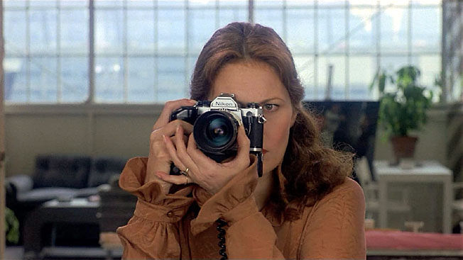 Car ses visions se poursuivent, à n’importe quel moment, dans la rue, dans la nuit, derrière l’objectif de son Nikon en pleine séance de shoot. Dommage, les visions ont lieu en même temps que les crimes se commettent, par une sorte de transmission de pensée analogue au moniteur qui reproduit les images vidéo de la séance en simultané. Alors qu’elle développe des photos dans sa chambre noire, Laura a encore une vision : ses modèles Lulu (Darlanne Fluegel) et Michele (Lisa Taylor), trop belles pour coucher avec des mecs, brutalement assassinées à demi nues alors qu’elles se paillardaient sur leur lit. C’est à leur enterrement que Laura, éperdue, veut se réconforter dans les bras de Neville, qui lui promet sa protection rapprochée et lui confie même un petit revolver. Mais qui est donc le psychopathe ?